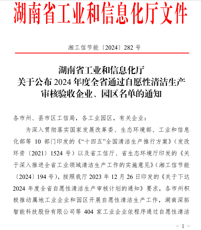 近日,湖南中部智能制造有限公司通过湖南省自愿性清洁生产审核验收,标志着公司在节能、降耗、减污、增效方面迈上新台阶。